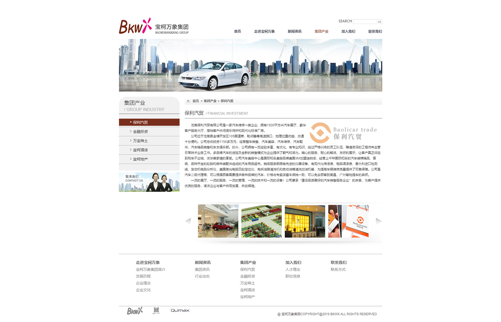 寶柯萬象集團(tuán)公司是1993年6月在萬寶稀土分離有限公司基礎(chǔ)上組建起來的大型企業(yè)集團(tuán)。經(jīng)過20多年的發(fā)展,寶柯萬象集團(tuán)公司已經(jīng)形成了以金融投資,酒店,汽車貿(mào)易和房地產(chǎn)開發(fā)為主業(yè)的集團(tuán)化企業(yè)。集團(tuán)公司所屬企業(yè)及項(xiàng)目遍布廣州,重慶、北京、深圳、江西以及香港等地區(qū),在資本規(guī)模、經(jīng)濟(jì)效益、企業(yè)管理、制度建設(shè)等方面都取得了明顯成效,實(shí)現(xiàn)了專業(yè)化、規(guī)?;?jīng)營和資源的優(yōu)化配置。