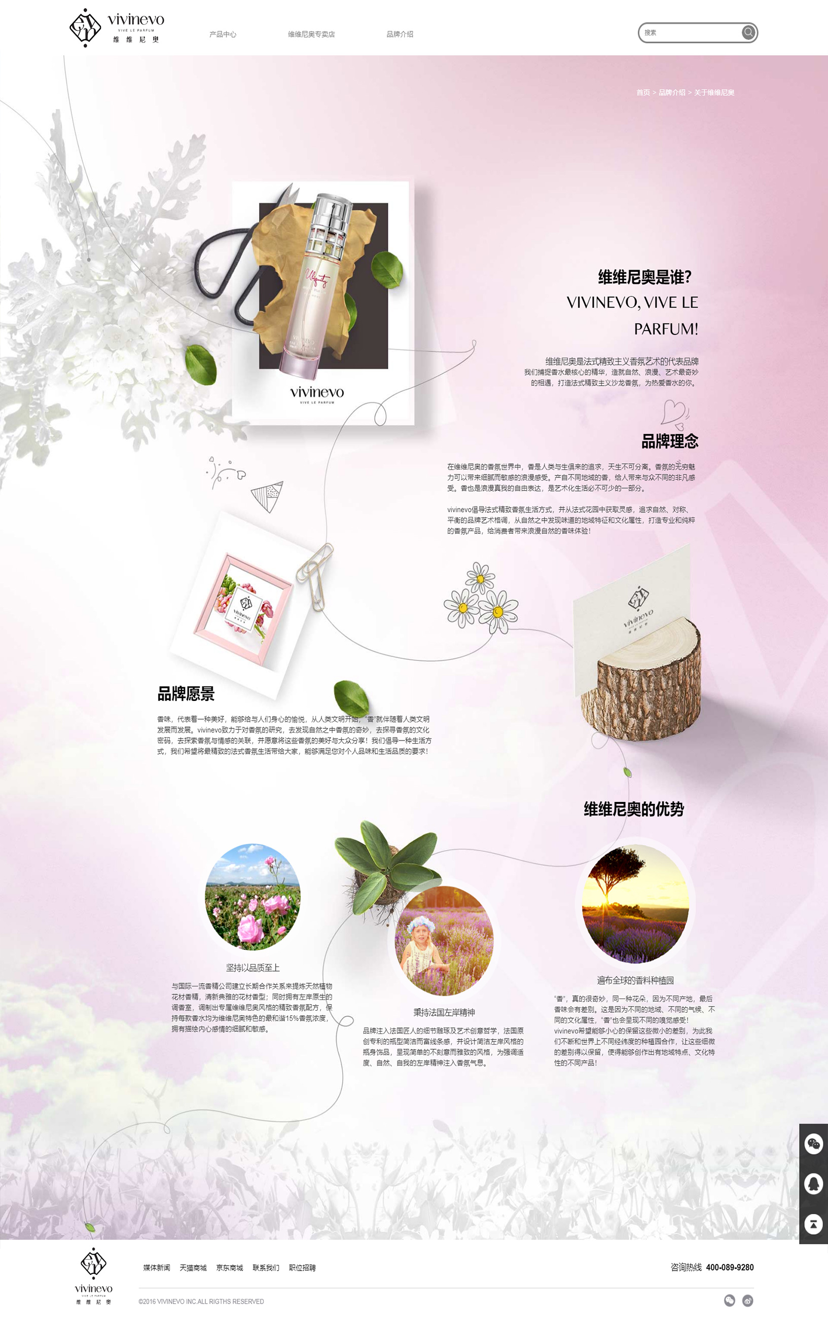 維維尼奧(vivinevo)從花園中獲取靈感,以“自然、浪漫、藝術(shù)”為品牌核心理念,倡導(dǎo)精致主義沙龍香氛和生活的儀式感。為了追求每一縷自然芳香和純粹香料的保證,品牌遠(yuǎn)赴法國香水之都格拉斯小鎮(zhèn),簽約品牌專屬原料種植園,堅持為顧客提供最高水品的品質(zhì)香氛。品牌的核心價值來源于自然,從自然之美中發(fā)現(xiàn)萬物蘊(yùn)藏的詩意,喚醒感官。
