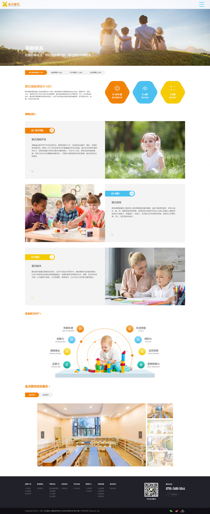 金點(diǎn)蒙氏教育,成立于2005年,17年來(lái)致力于0-6歲兒童早教和托育服務(wù),始終專注于提供科學(xué)系統(tǒng)的教育服務(wù),并具有成熟的校區(qū)管理體系。金點(diǎn)蒙氏通過(guò)關(guān)注孩子的情緒、行為、情感和智力發(fā)展等方面,幫助他們形成良好的學(xué)習(xí)習(xí)慣,構(gòu)建健全的自我認(rèn)知,培養(yǎng)社會(huì)立足所需的獨(dú)立性和領(lǐng)導(dǎo)力。