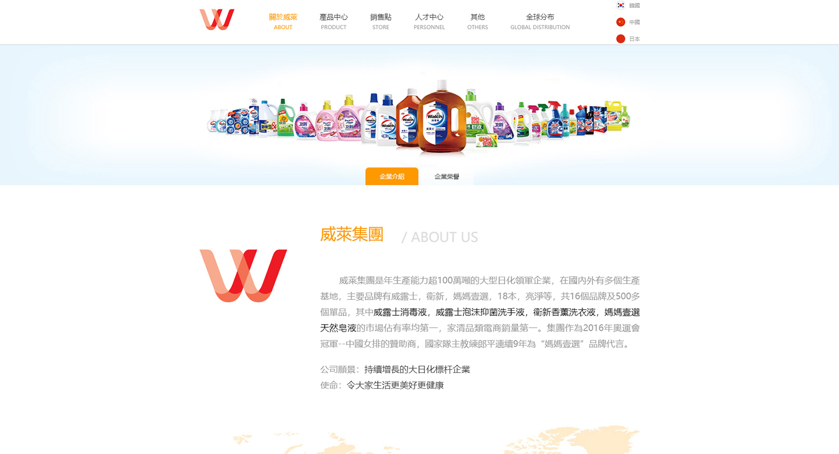 威萊集團(tuán)是年生產(chǎn)能力超100萬噸的大型日化領(lǐng)軍企業(yè),在國(guó)內(nèi)外有多個(gè)生產(chǎn)基地,主要品牌有威露士,衛(wèi)新,媽媽壹選,18本,亮淨(jìng)等,共16個(gè)品牌及500多個(gè)單品,其中威露士消毒液,威露士泡沫抑菌洗手液,衛(wèi)新香薰洗衣液,媽媽壹選天然皂液的市場(chǎng)佔(zhàn)有率均第一,家清品類電商銷量第一。集團(tuán)作為2016年奧運(yùn)會(huì)冠軍--中國(guó)女排的贊助商,國(guó)家隊(duì)主教練郎平連續(xù)9年為“媽媽壹選”品牌代言。