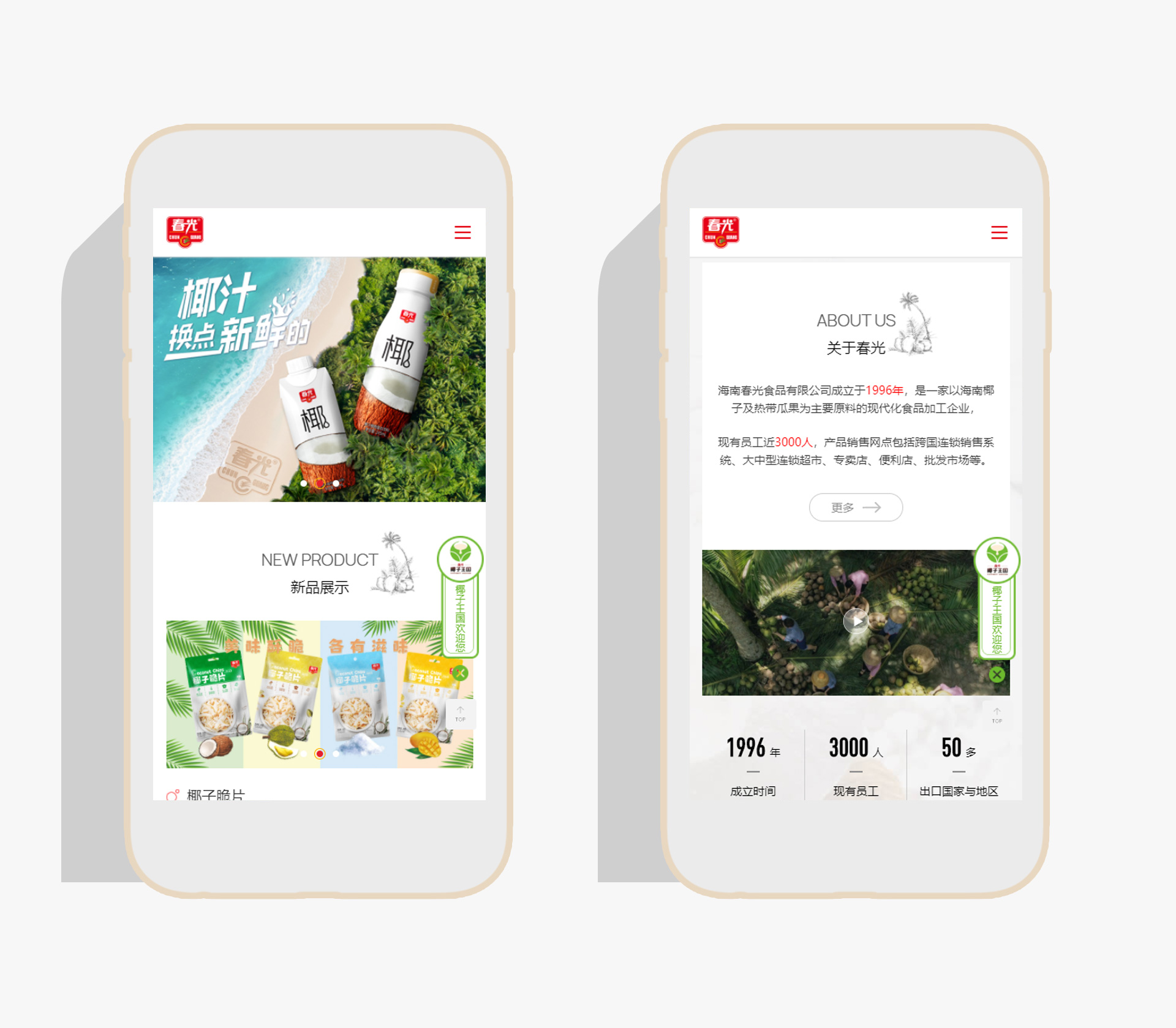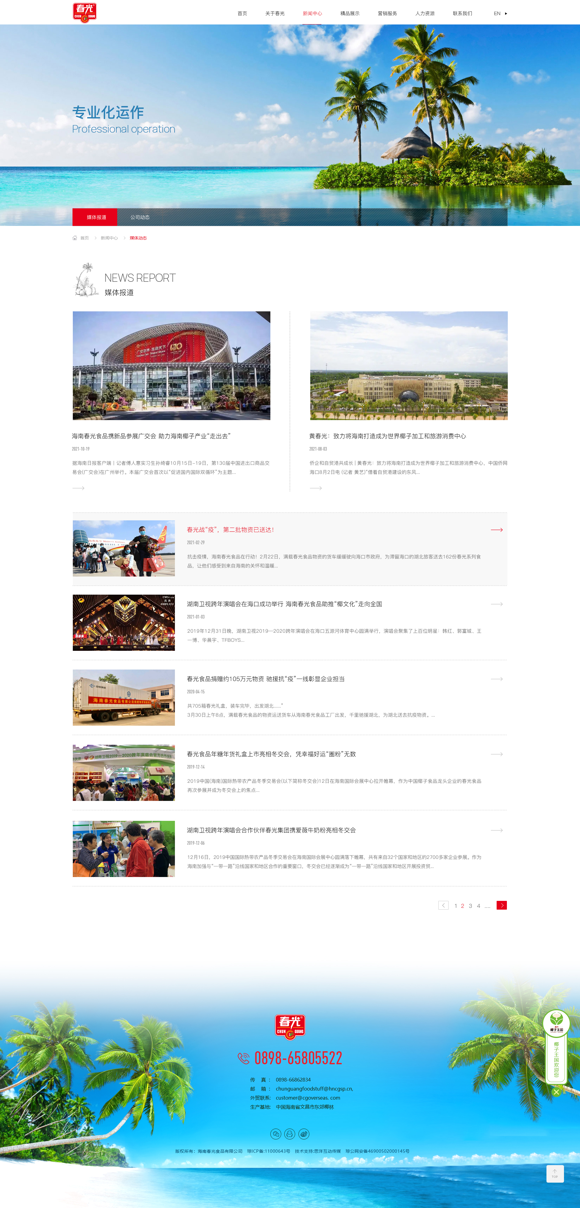 海南春光食品有限公司成立于1996年,是一家以海南椰子及熱帶瓜果為主要原料的現(xiàn)代化食品加工企業(yè),現(xiàn)有員工近3000人,產(chǎn)品銷售網(wǎng)點(diǎn)包括跨國連鎖銷售系統(tǒng)、大中型連鎖超市、專賣店、便利店、批發(fā)市場等。部分產(chǎn)品出口美國、新加坡、歐洲、中東、香港、臺灣等50多個國家和地區(qū),是全國農(nóng)產(chǎn)品加工業(yè)示范企業(yè)、農(nóng)業(yè)產(chǎn)業(yè)化國家重點(diǎn)龍頭企業(yè),產(chǎn)品商標(biāo)經(jīng)國家商標(biāo)局認(rèn)定為“中國馳名商標(biāo)”。